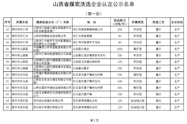 日前,省能源局公布了第一批山西煤炭洗选企业认定名单,涉及7个地市65家企业入选。