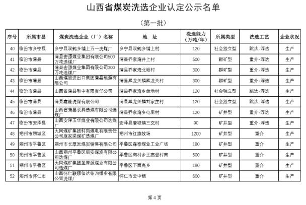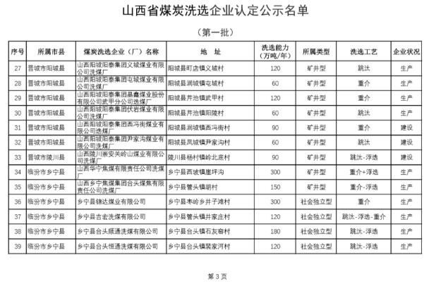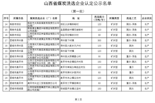 第一批山西煤炭洗选企业认定名单公布