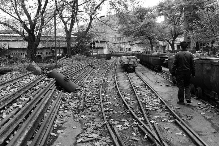 曾经的煤炭运输铁路专线而今成为陶瓷厂的临时堆放场