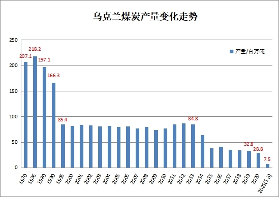 2021年一季度乌克兰煤炭产量同比下降3.4%