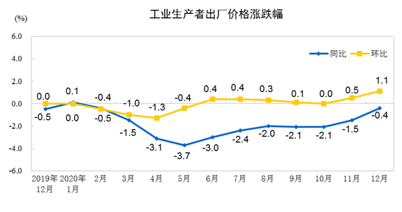 2020年12月份工业生产者出厂价格同比下降0.4%