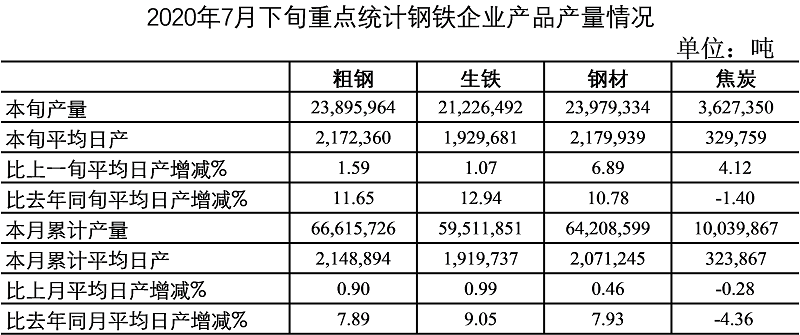 中钢协:2020年7月下旬钢铁企业生产与库存情况
